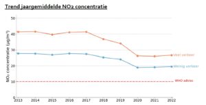 W Raporcie wyników jakości powietrza z roku 2022 opublikowanego przez GGD Amsterdam[2] widoczne są kluczowe tendencje spowodowane wprowadzeniem strefy widoczne na poniższych wykresach.